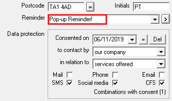 - With a “Reminder” set, you can ensure colleagues complete certain process or checks, whenever the client record in question is visited.